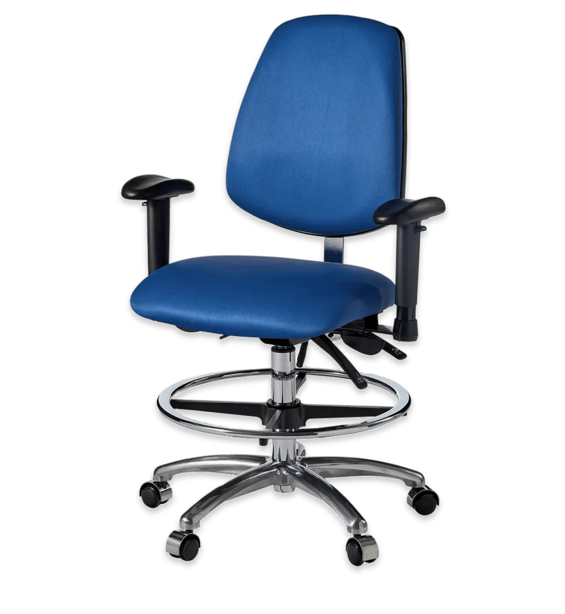 The Clean Room chairs were designed for applications where the concentration of air-borne particles must be kept below a desired level. They are evaluated by independent laboratories to meet Fed Standard 209E and ISO 14644-1, which is the industry standard for particulate requirements. We offer Clean Room chairs which are certified for ISO Class 4 (Clean Room Class 10) and ISO Class 5 (Clean Room Class 100) standards.